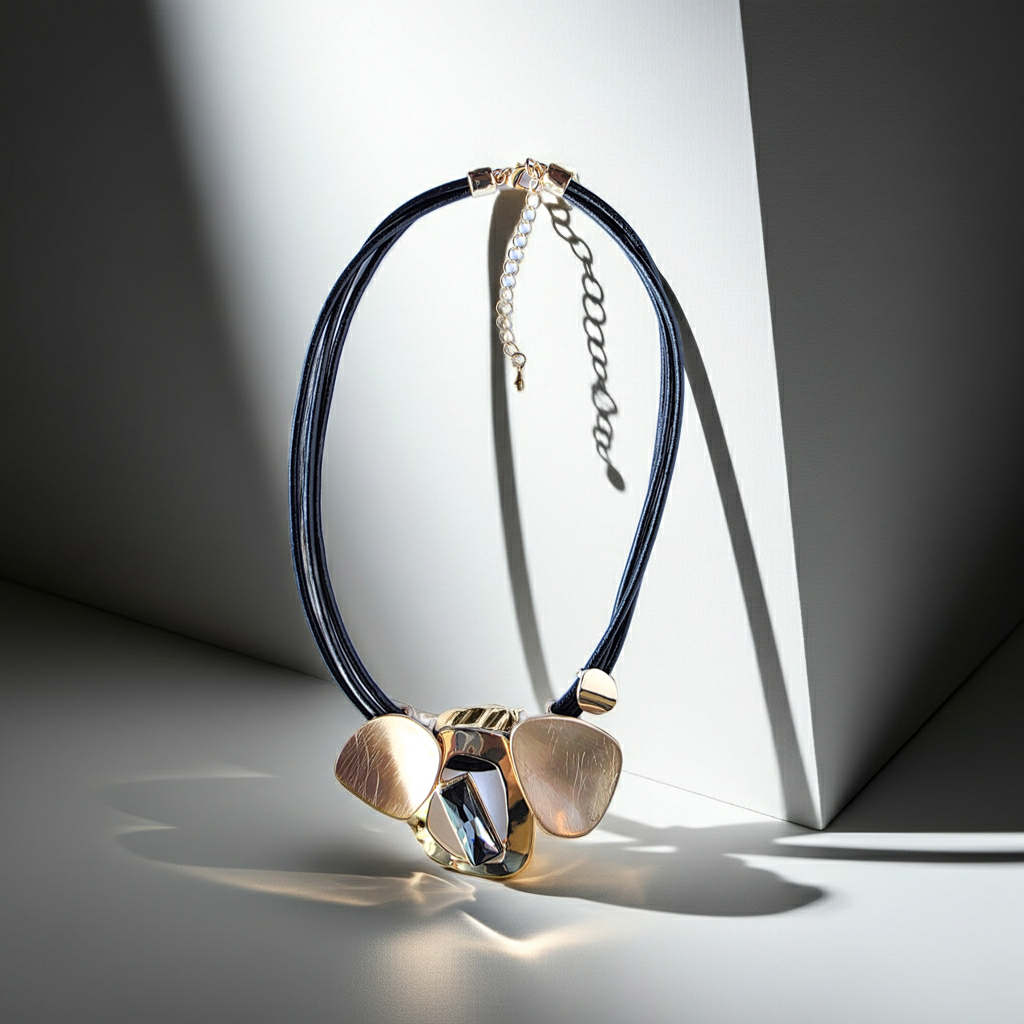 Elevate your everyday elegance with this refined short necklace, crafted from durable metal with luxurious gold plating. The design features a striking glass stone set in gold-plated detailing, suspended from supple black leather cords that provide both comfort and contemporary style. Adjustable at 42cm with a 5cm extension chain, this piece adapts seamlessly to your neckline preferences. The combination of premium materials and thoughtful construction makes it a versatile addition to any jewelry collection, suitable for both casual wear and refined occasions.