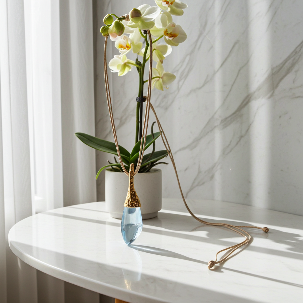 The Chandy Necklace features an impressive clear resin water drop pendant suspended from an adjustable wax cord, making it versatile for layering or standalone wear. Crafted from premium-grade resin, the 9.8cm drop showcases exceptional clarity and luminosity, set within an artfully designed abstract metal frame that adds contemporary sophistication. At 2.7cm across its widest point, the pendant commands attention without overwhelming the silhouette. The adjustable length accommodates various necklines and styling preferences, while the high-quality resin construction ensures durability and lasting brilliance. A statement piece that bridges minimalist elegance with bold geometric design.